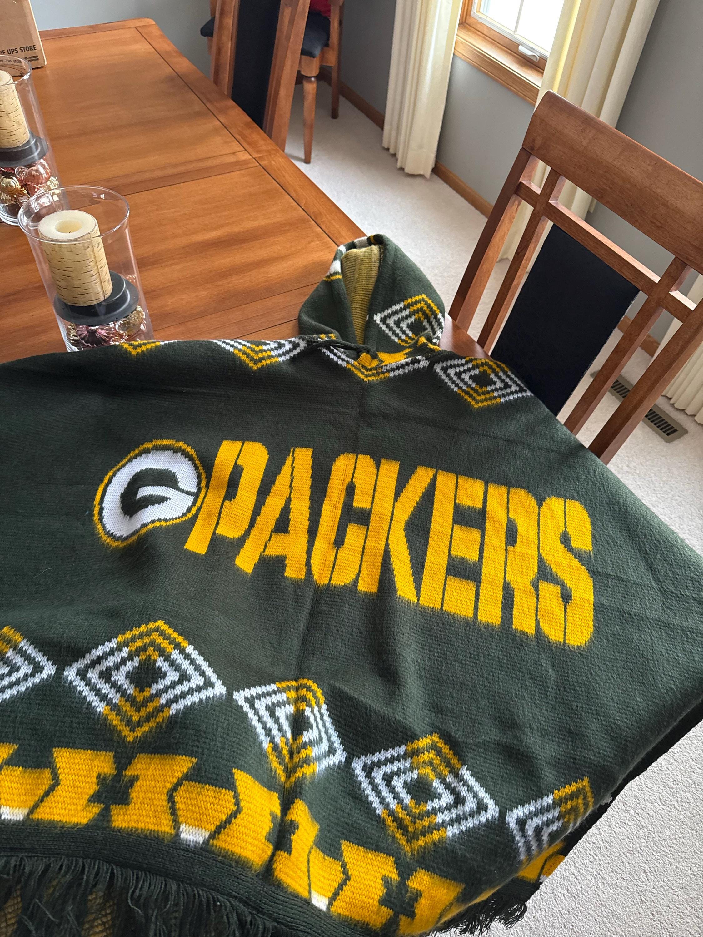 Green Bay poncho, sports poncho, Green Bay overcoat, G poncho, Green Bay overcoat, Green Bay handcrafted poncho, Green Bay serape, handcrafted poncho