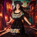 Hermoso vestido con calaveras especialmente para este Día de muertos o halloween,