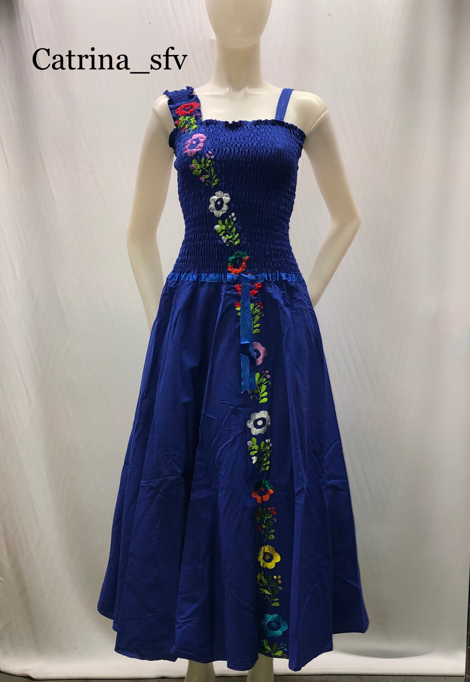 Ask a questionVestido mexicano largo de manta bordado a mano con hilo de seda talla única se adapta a las tallas SM-M-L